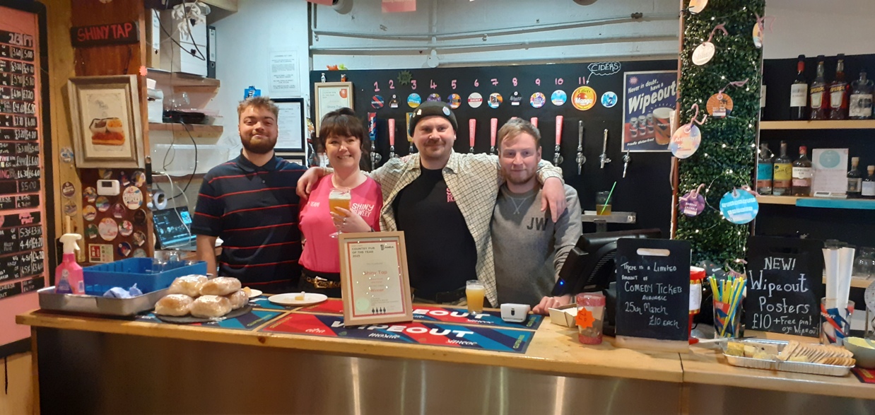 Holly and Tom of the Shiny Tap proudly showing off their certificate.